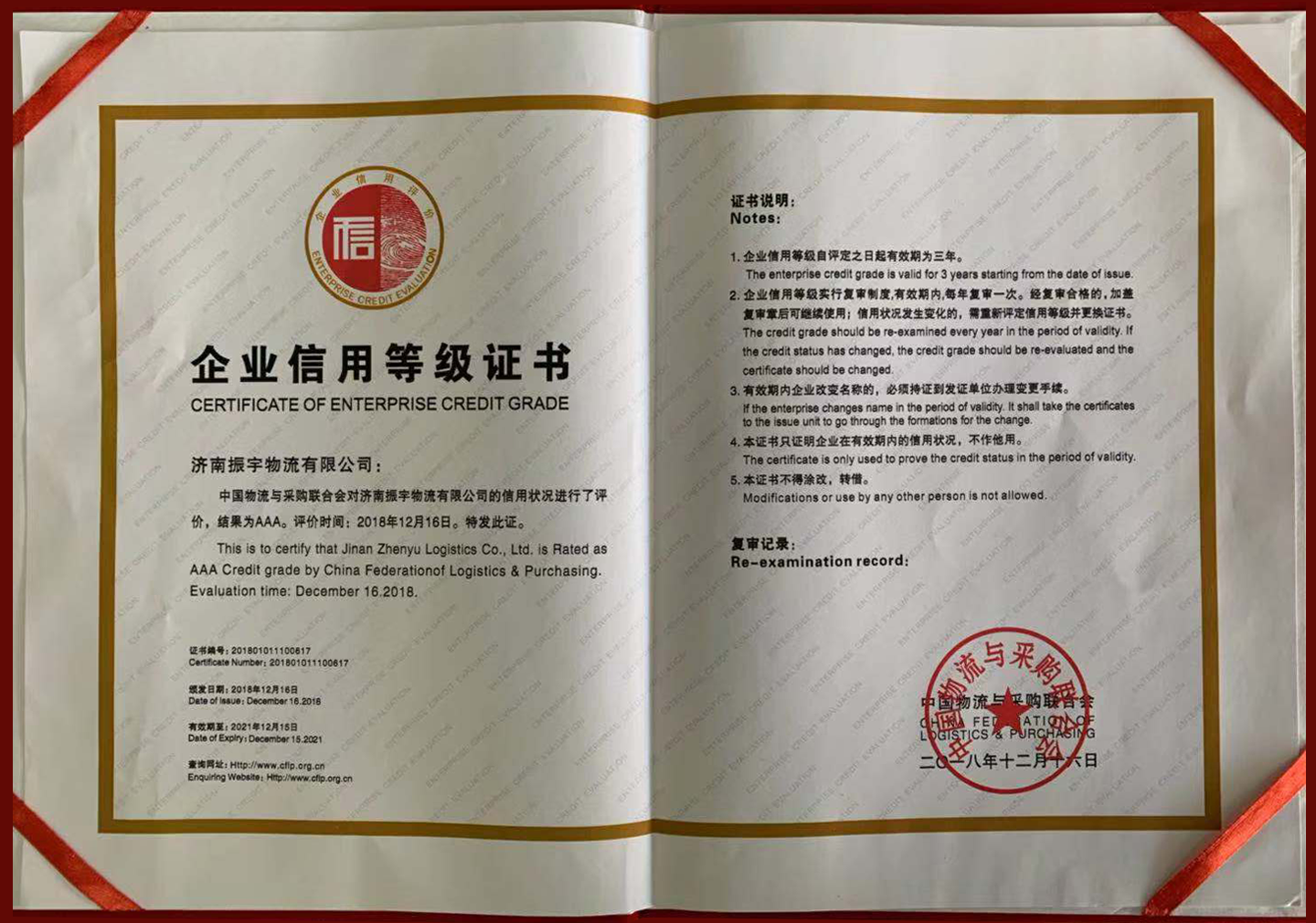 企業信用等級證書